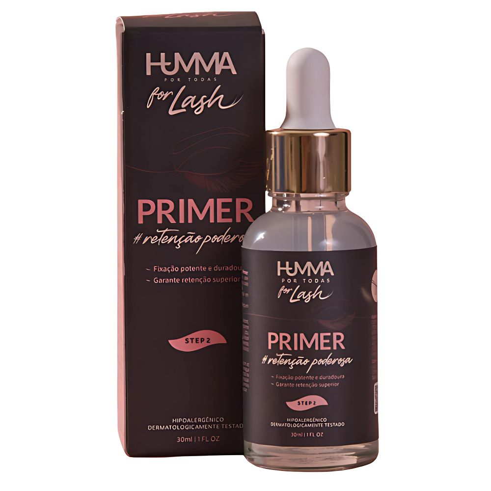 O Primer For Lash Humma é o passo essencial para garantir retenção poderosa e alongamentos de cílios impecáveis. Desenvolvido com fórmula hipoalergênica e segura, ele prepara os fios naturais removendo oleosidade e resíduos, criando a base perfeita para máxima aderência da cola.